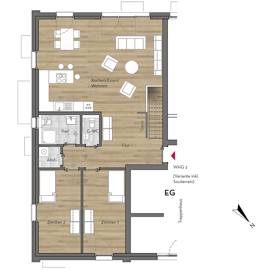 Ihre Erdgeschoss-Souterrainwohnung erstreckt sich über zwei Ebenen und vermittelt echtes Haus-im-Haus-Gefühl.