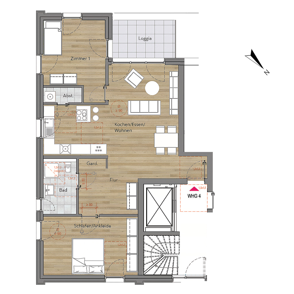 Auch in dieser Obergeschoss Einheit wohnen Sie komfortabel auf ca. 86,1 m² mit klarer, schwellenarmer Struktur.